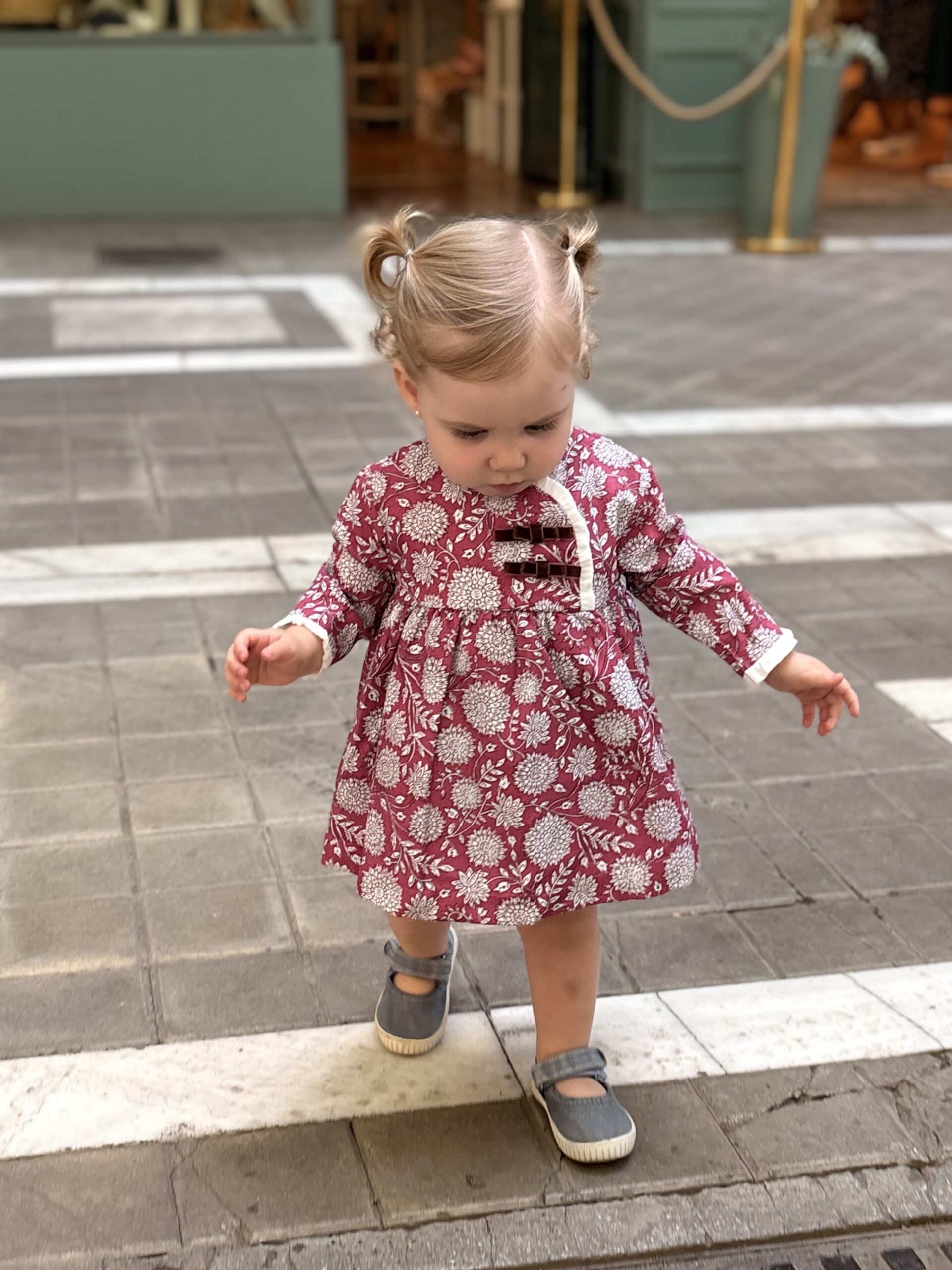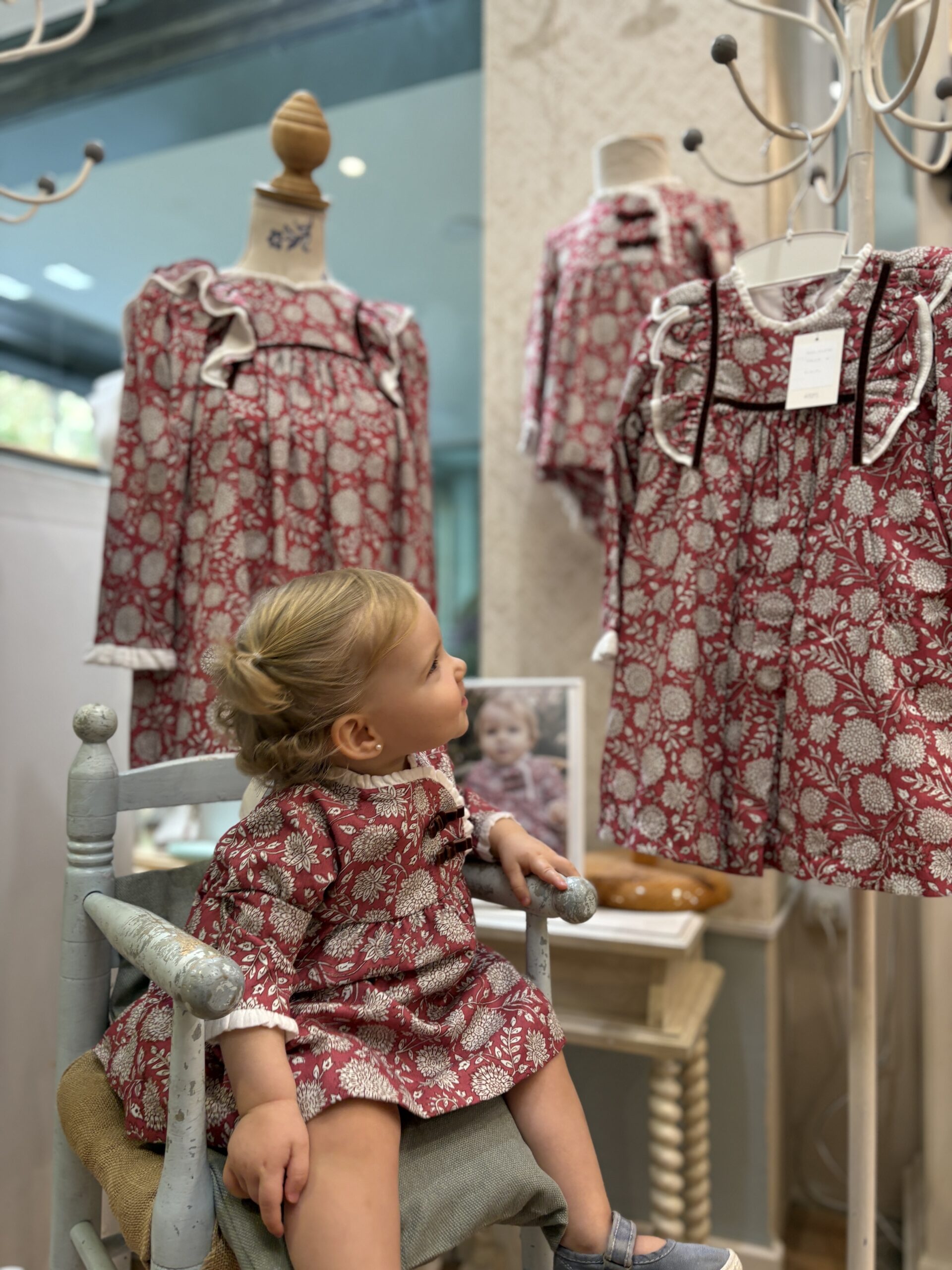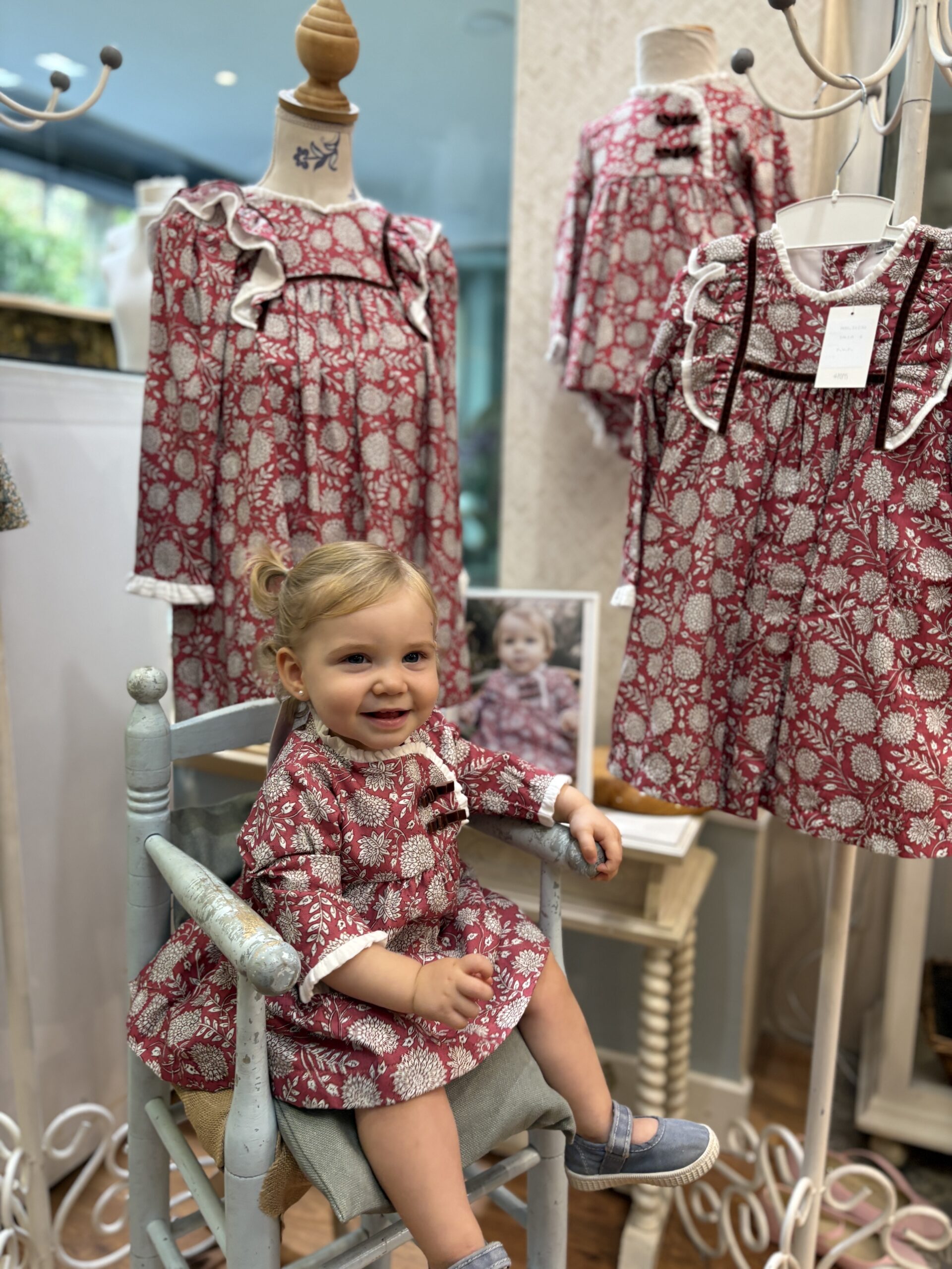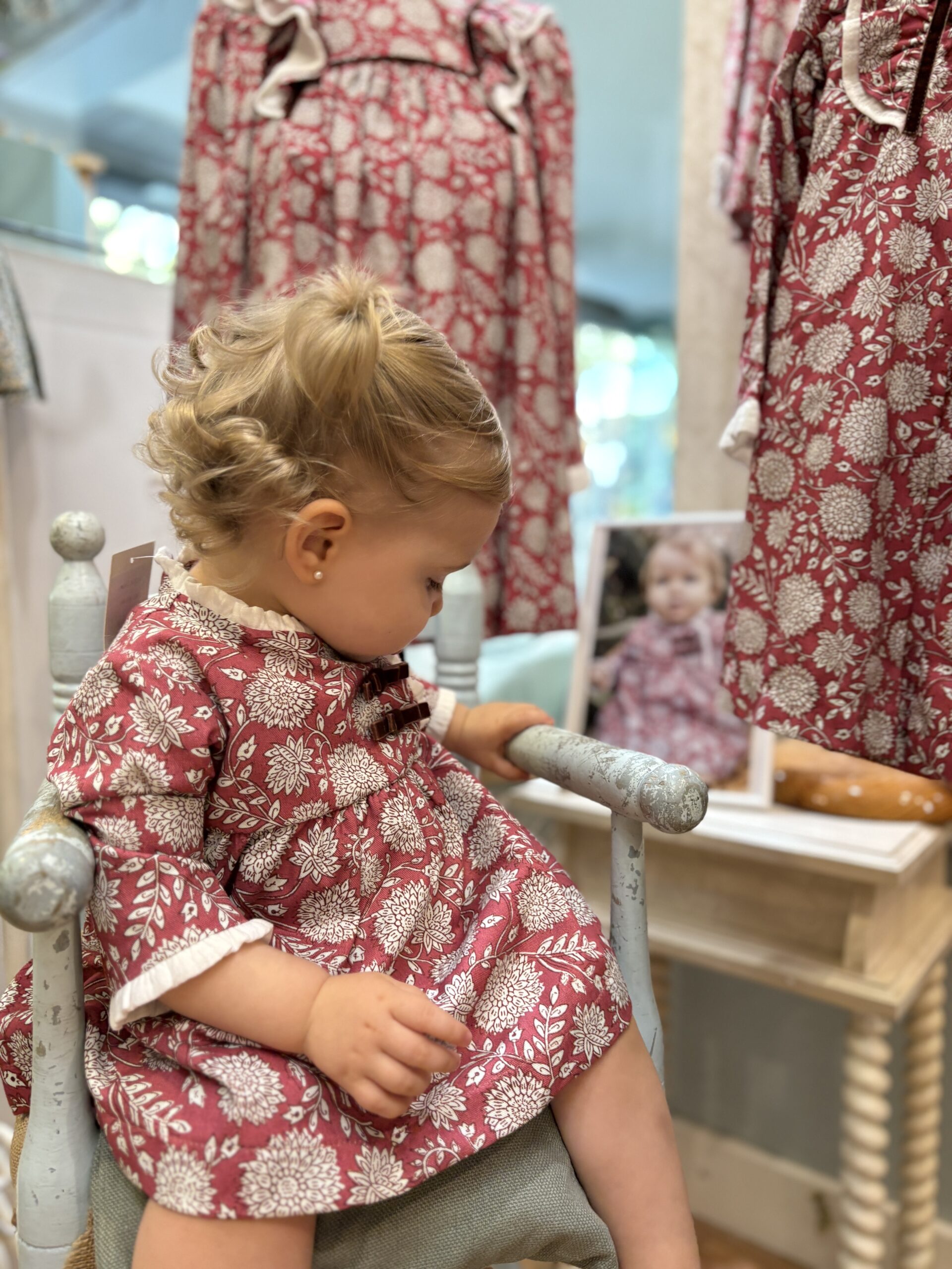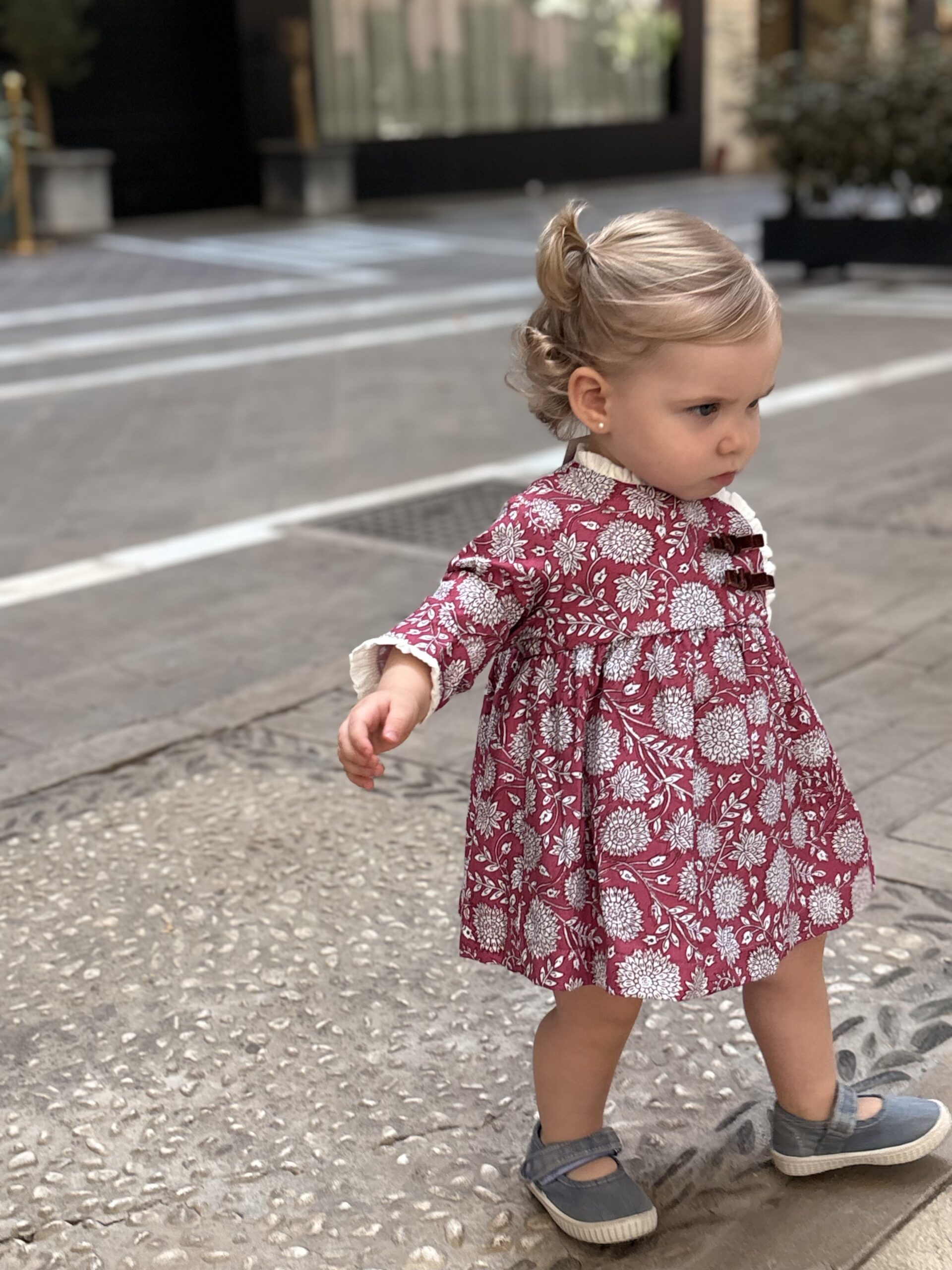 Jesusito con estampado floral en villena y lacitos en terciopelo.