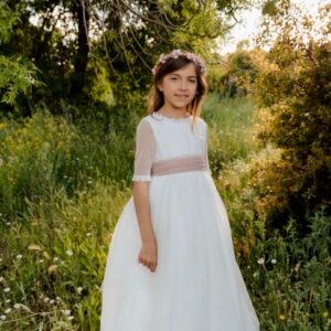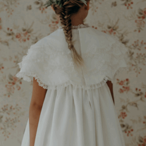 Traje de marinero en color blanco y detalles en azul pastel y beige.